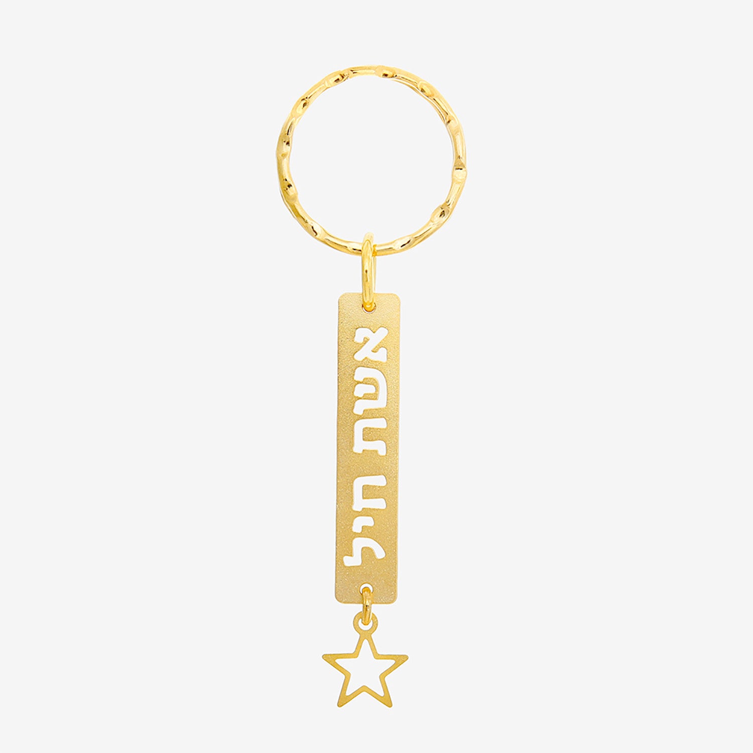 מחזיק מפתחות מעוצב עם כיתוב 'אשת חיל' ותיליון בצורת כוכב. יתכן שזה המפתח הכי חשוב בצרור שלך - תזכורת קטנה ועדינה מידי יום על חשיבות העוצמה בחייך.